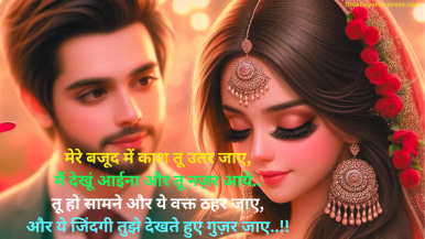मेरे बजूद में काश तू उतर जाए, मैं देखूं आईना और तू नज़र आये.. तू हो सामने और ये वक्त ठहर जाए, और ये जिंदगी तुझे देखते हुए गुज़र जाए..!!
