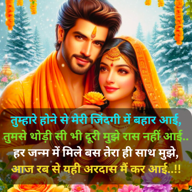 तुम्हारे होने से मेरी जिंदगी में बहार आई, तुमसे थोड़ी सी भी दूरी मुझे रास नहीं आई.. हर जन्म में मिले बस तेरा ही साथ मुझे, आज रब से यही अरदास मैं कर आई..!!