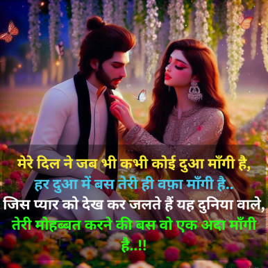 मेरे दिल ने जब भी कभी कोई दुआ माँगी है, हर दुआ में बस तेरी ही वफ़ा माँगी है.. जिस प्यार को देख कर जलते हैं ये दुनिया वाले, तेरी मोहब्बत करने की बस वो एक अदा माँगी है..!!