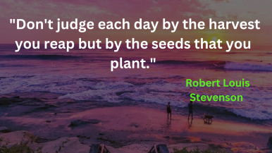 "Don't judge each day by the harvest you reap but by the seeds that you plant."
