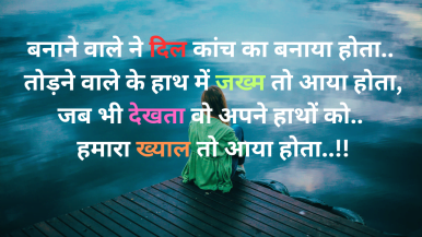 बनाने वाले ने दिल कांच का बनाया होता.. तोड़ने वाले के हाथ में जख्म तो आया होता, जब भी देखता वो अपने हाथों को.. हमारा ख्याल तो आया होता..!!